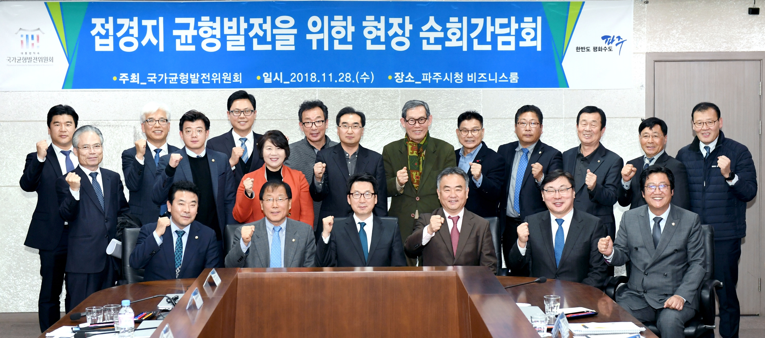 파주시는 이번 간담회를 통해 파주시의 주요 현안인 ‘통일경제특구 지정’, ‘지하철 3호선 조속 추진’, ‘조리금촌선 국가 계획 반영’, ‘접경지역 가스 공급 지원’, ‘반환공여지 개발’, ‘사격장 주변 피해대책’, ‘방호벽과 철책선 제거’, ‘금촌시장 주변 도시재생’, ‘애룡저수지 공연장 건립 및 남북공연 추진’, ‘운정 다누림 복합커뮤니티센터 건립’ 등 10가지 사항을 국가균형발전위원회에 건의했다.
