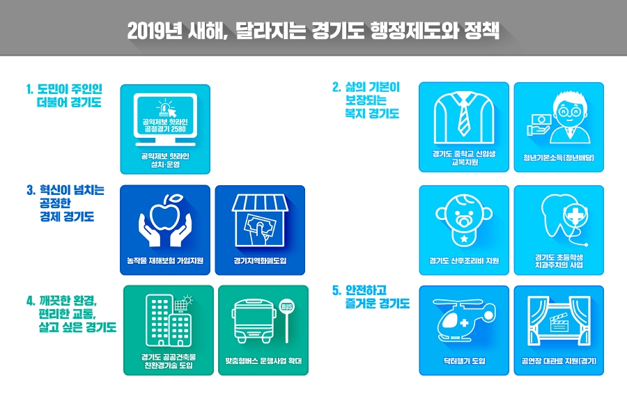 ○ 민선7기 경기 도정 5대 목표로 알아본 새해 경기도의 달라지는 행정제도와 정책