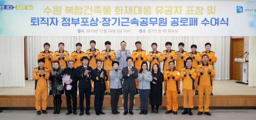 이들은 지난 11월 30일 수원 골든프라자 화재 발생 당시 신속한 화재 경보와 시민대피, 화재진압, 부상자 구조 등에 힘쓴 사람들이다. 화재 당시 지상 11층 지하 5층 규모의 골든프라자 건물 내 많은 사람들이 있어 다수의 사망자가 우려됐지만, 성공적 화재진압으로 단 한 명의 사망자도 발생하지 않았다.