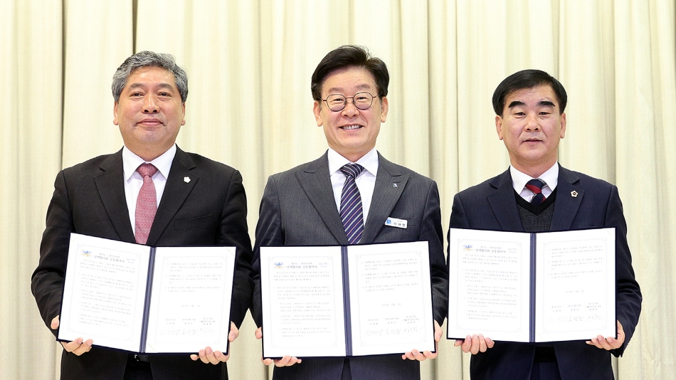 ○ 이재명 지사, 송한준 의장, 염종현 대표 공동협약서 서명