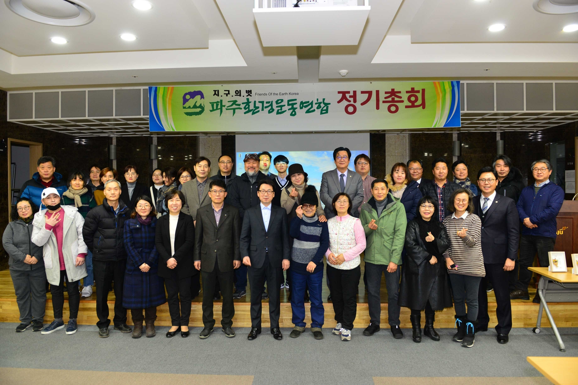 지난1월26일(토) 운정행복센터 다목적홀에서 파주환경운동연합 제16차 정기총회가 개최되었다. 이날 총회에서 최종환 파주시장은 “숨쉬는 지구, 지속가능한 파주를 만들기 위해 노력해주셔서 회원 입장으로 진심으로 감사드린다. 파주환경연합이 제안한 임진강의 쓰레기를 수거하는 일과 임진강 주변에 퍼져가며 생태계를 위협하고 파괴하는 외래식물인 가시박 제거에도 파주시가 노력하겠다.