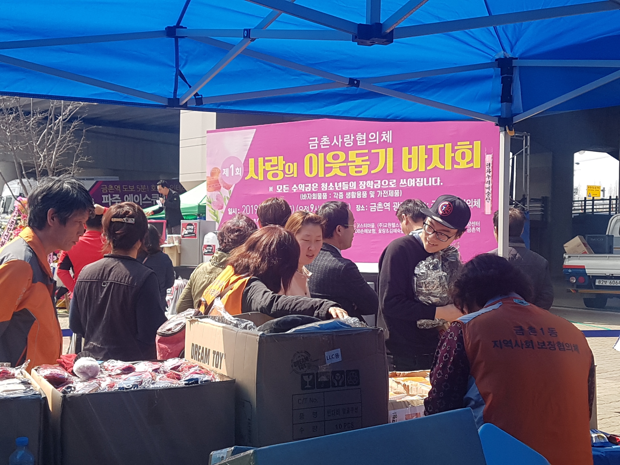 파주시 금촌1동 금촌사랑협의체의 주최로 지난 13일 금촌역 광장에서 사랑의 이웃돕기 바자회가 열려 시민 2,000여명이 참여한 가운데 성황리에 마쳤다.