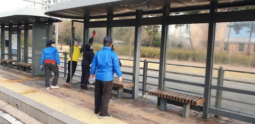파주시 운정1동 실버경찰대 ‘봄맞이 버스정류장 청결활동’실시