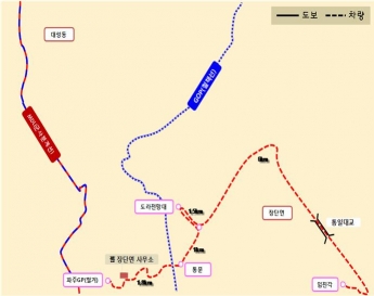 임진각-도라전망대 차량이동(7.5km) 도라전망대-통문 차량이동(2.5km) 통문-파주GP(철거) 차량왕복(3.6km) 통문-임진각 차량이동(7km)