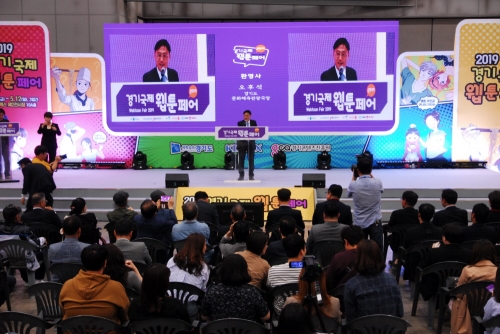 각종 국내 웹툰은 물론, 웹툰을 이용한 상품‧영화 등 웹툰의 모든 것을 한 자리에서 볼 수 있는 국내 최초의 웹툰 전문전시회 ‘2019 경기국제웹툰페어’가 10일 막을 올렸다.