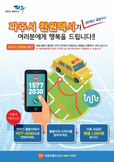 파주시 천원택시 추가요청 30개 마을, 선정 결과는 7월 중