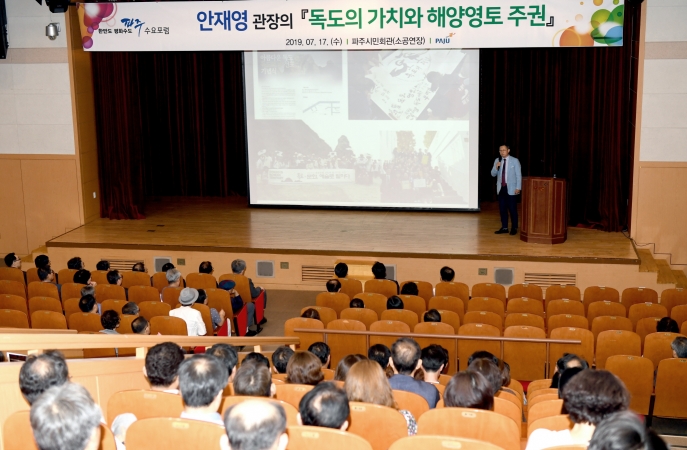 파주시는 17일 오후 3시 시민회관 소공연장에서 영토문화관 독도 안재영 관장을 초청해 ‘독도의 가치와 해양영토 주권’이라는 주제로 7월 수요포럼을 개최했다.