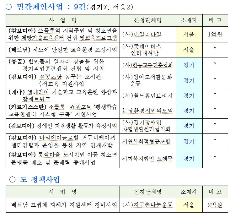 경기도, 민간 제안 아이디어 반영한 ‘도민참여형 국제개발협력사업’ 9건 추진