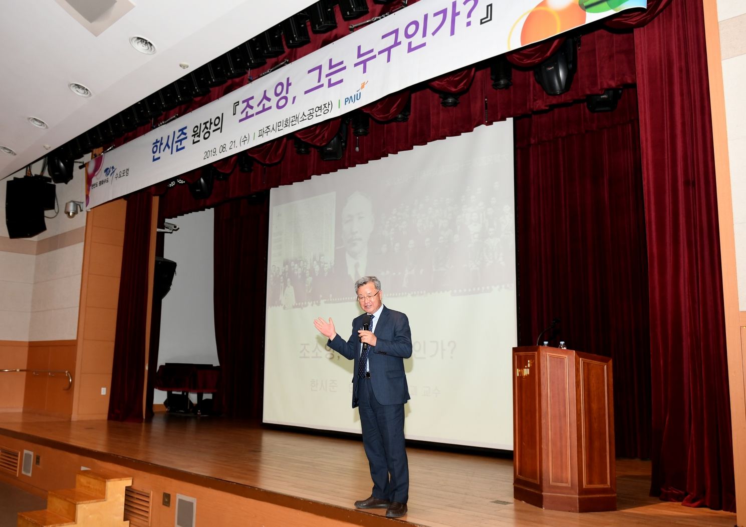 파주시는 21일 오후 3시 시민회관 소공연장에서 단국대학교 동양학연구원 한시준 원장을 초청해 파주 출신 독립운동가 ‘조소앙, 그는 누구인가?’라는 주제로 8월 수요포럼을 개최했다.