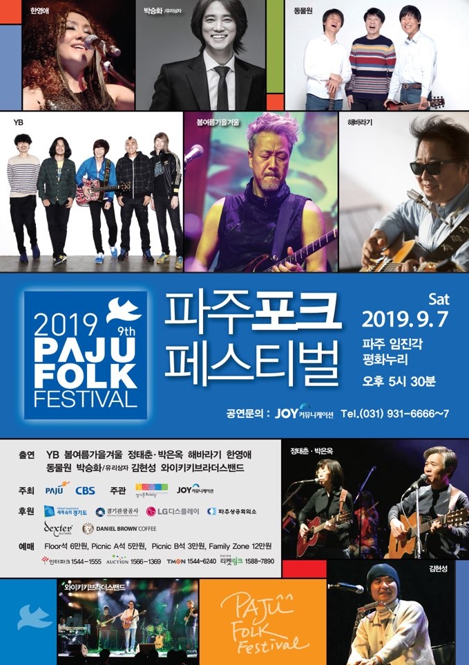 파주시가 주최하고 경기문화재단이 주관하는 파주포크페스티벌은 YB, 봄여름가을겨울, 정태춘·박은옥, 해바라기, 한영애, 동물원, 박승화(유리상자), 김현성과 레밴드, 와이키키브라더스밴드가 출연해 가을과 포크 음악을 만끽할 수 있는 최고의 공연을 선사할 예정이다.