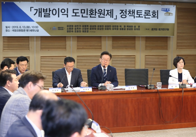 이재명 지사는 지난 8월 국회의원회관에서 열린 정책토론회에서 “불로소득은 공공이 환수해서 국민들에게 돌려주는 것이 맞다”며 “경기도에서 시작하지만 개발이익 공공환수라고 하는 대명제가 대한민국의 주된 정책의제로 자리잡게 되길 바란다”고 공공개발이익 환원제의 법제화 필요성을 강조하기도 했다.