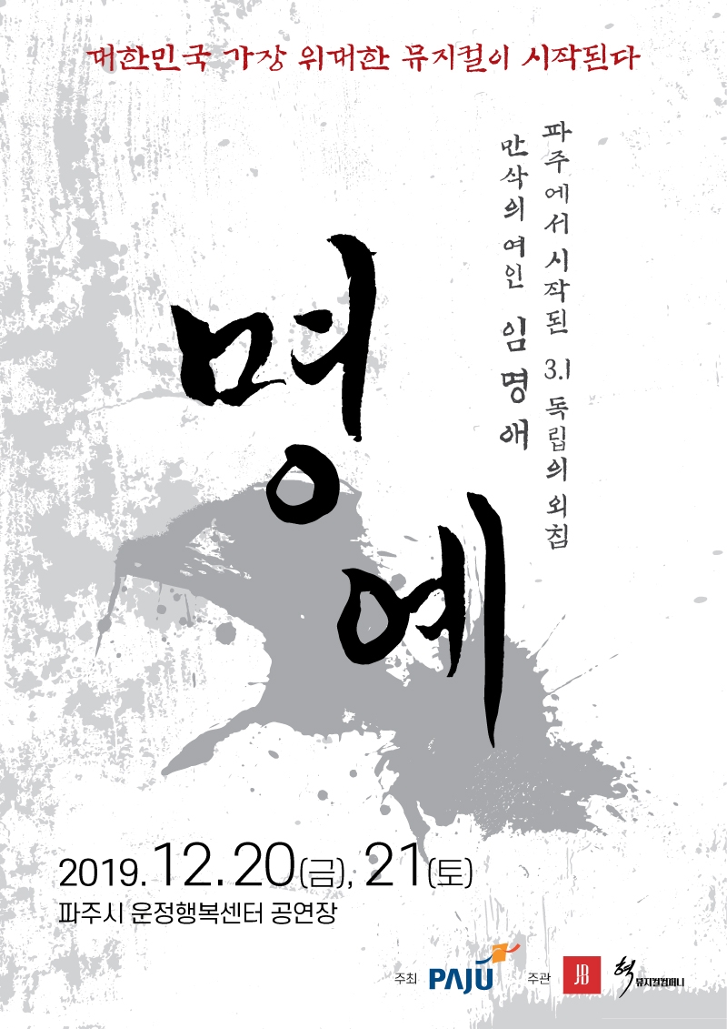 최종환 파주시장은 “3·1운동 및 임시정부수립 100주년 기념사업의 일환으로 경기도 공모에 선정된 이번 창작뮤지컬 ‘명예’를 통해 시민들의 민족 공동체에 대한 올바른 이해와 청소년들의 역사의식을 함양시킬 수 있는 교육적 효과 등 문화적 자긍심을 높일 수 있는 계기가 되길 바란다”고 말했다.