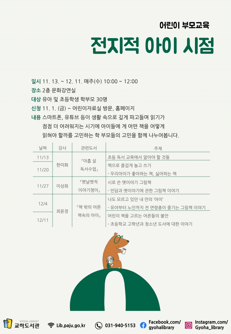 파주시 교하도서관 부모독서교육‘전지적 아이시점’개최