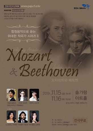 파주시 시립예술단은 오는 11월 15일과 16일 운정 솔가람아트홀에서 ’합창음악으로 듣는 위대한 작곡가 시리즈2, 모차르트&베토벤‘ 기획공연으로 선보인다.