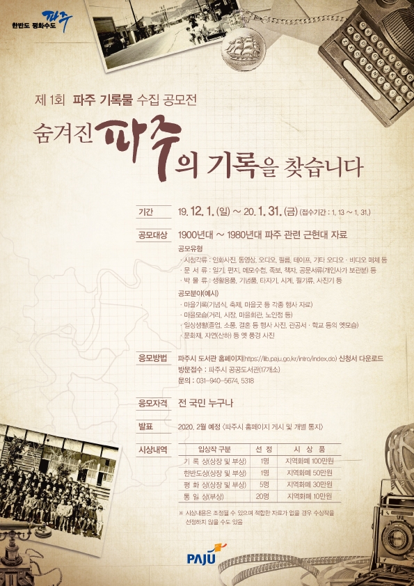 제1회 파주 기록물 수집 공모전 개최 - 숨겨진 파주의 기록을 찾습니다