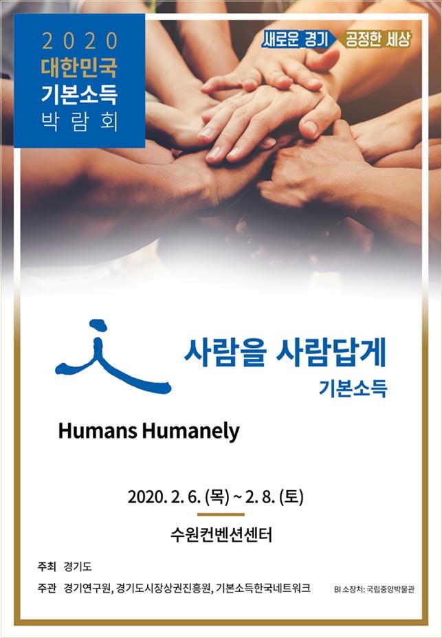 민선 7기 경기도가 ‘공정한 세상’을 실현하고자 추진하고 있는 ‘기본소득’과 ‘지역화폐’의 전 국민적 공감대 형성을 위한 ‘소통‧교류의 장’인 ‘2020 대한민국 기본소득박람회’가 오는 2020년 2월 6일부터 8일까지 사흘간 수원컨벤션센터에서 개최된다.