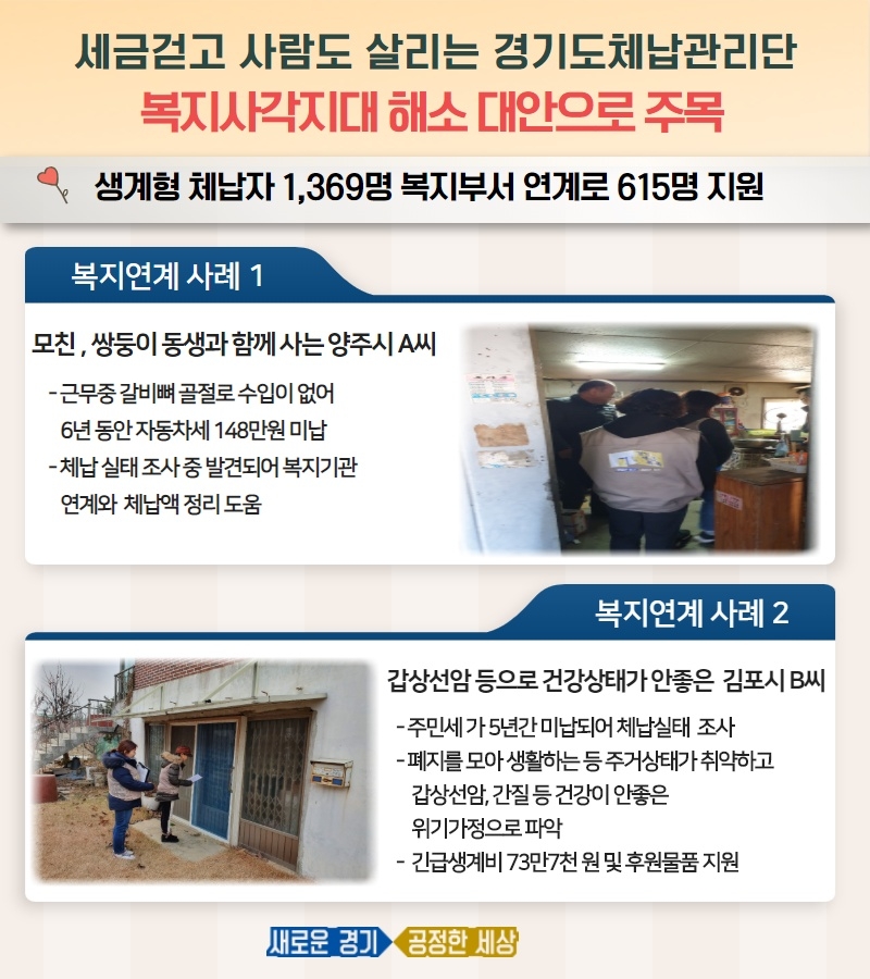 ○ 경기도 체납관리단, 생계형 체납자 1,369명 복지부서 등 연계로 615명 지원