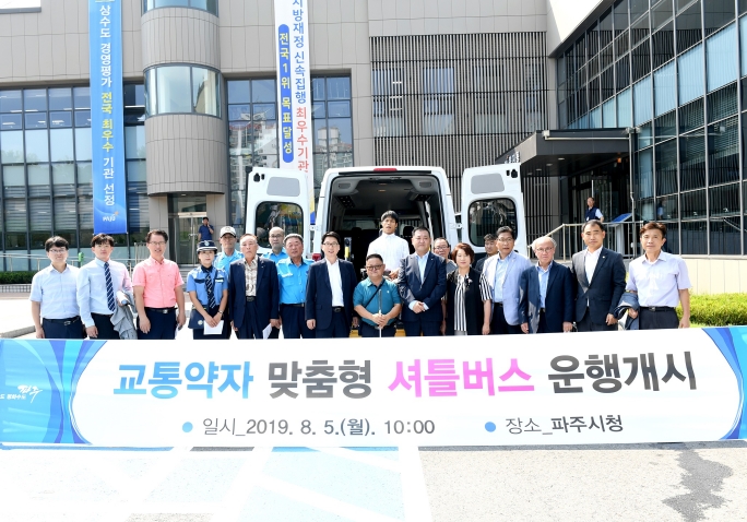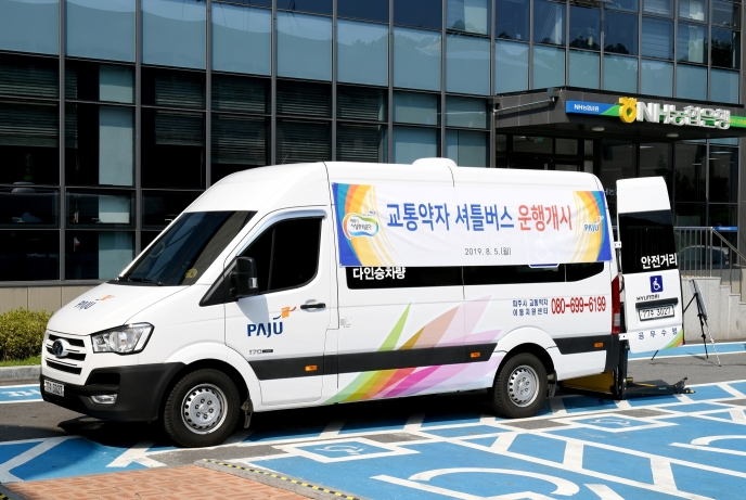 파주시는 교통약자의 사회참여를 지원하기 위해 이용자 중심의 특별교통수단을 확대 운영한다. 경기도 최초로 ‘맞춤형 셔틀버스’ 운행을 시작했고, 2020년 1월부터는 교통약자 ‘바우처 택시’를 도입할 예정이다.