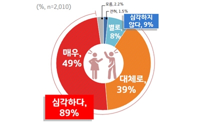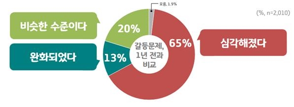 경기도가 ‘사회 갈등’에 대한 도민 여론조사를 실시한 결과, 도민 대다수(89%)는 우리사회 갈등문제에 대해 ‘심각하다’고 응답했다. 또 65%는 1년 전보다 ‘심각해졌다’고 답했다.