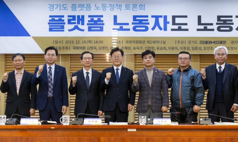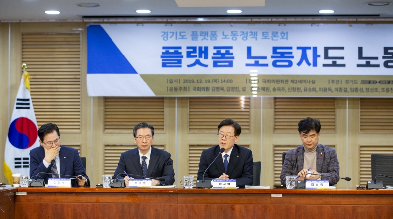 이 지사는 19일 국회의원회관에서 열린 ‘경기도 플랫폼 노동정책 토론회’에서 “평택시 인구가 50만명 정도 되는데 플랫폼 노동자 수가 평택시 인구에 육박하거나 더 넘어서고 있다고 한다”라며 “새로운 노동형태가 생겨나고 있지만 법령이 따라가지 못하면서 많은 노동자들이 보호받지 못하고 있는 현실인 것 같다”고 지적했다.