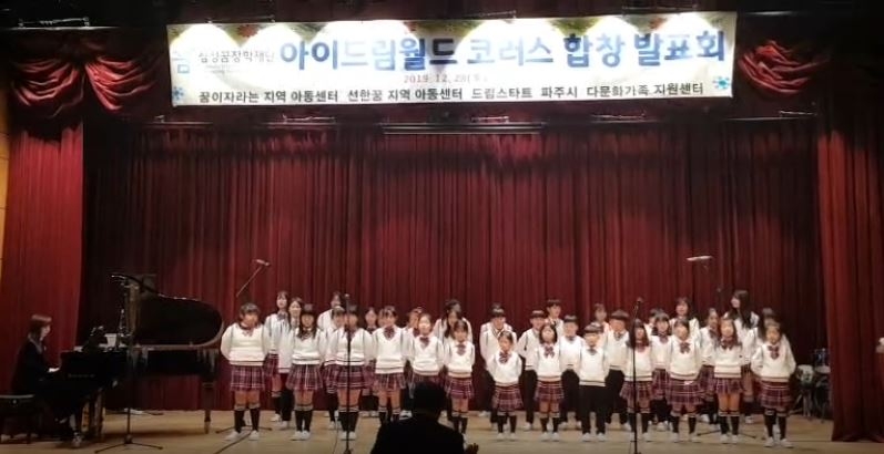 ‘아이드림월드 합창단’은 파주시 드림스타트와 꿈이자라는지역아동센터, 선한꿈지역아동센터, 파주시 건강가정·다문화가족지원센터의 아동들이 함께 만든 연합 합창단으로 삼성꿈장학재단의 ‘2019년 배움터 교육지원사업’ 공모사업에 선정돼 창단됐다. 이번 발표회는 합창단원들이 그동안 갈고 닦은 실력을 가족과 친구들 앞에서 마음껏 발휘할 수 있도록 기획됐다.