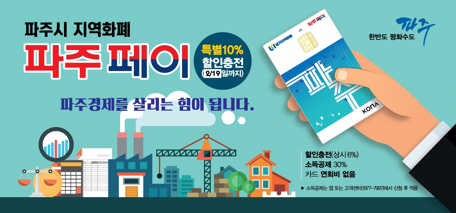 파주시는 1월 4일부터 2월 29일까지 지역화폐인 파주Pay(페이) 특별할인을 실시한다.