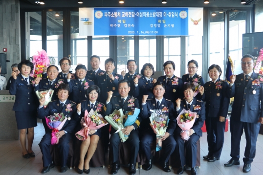 파주소방서(서장 김인겸)는 지난 16일 와동동 소재 규수당에서 교하 전담·여성의용소방대 대장 이·취임식 행사를 가졌다.