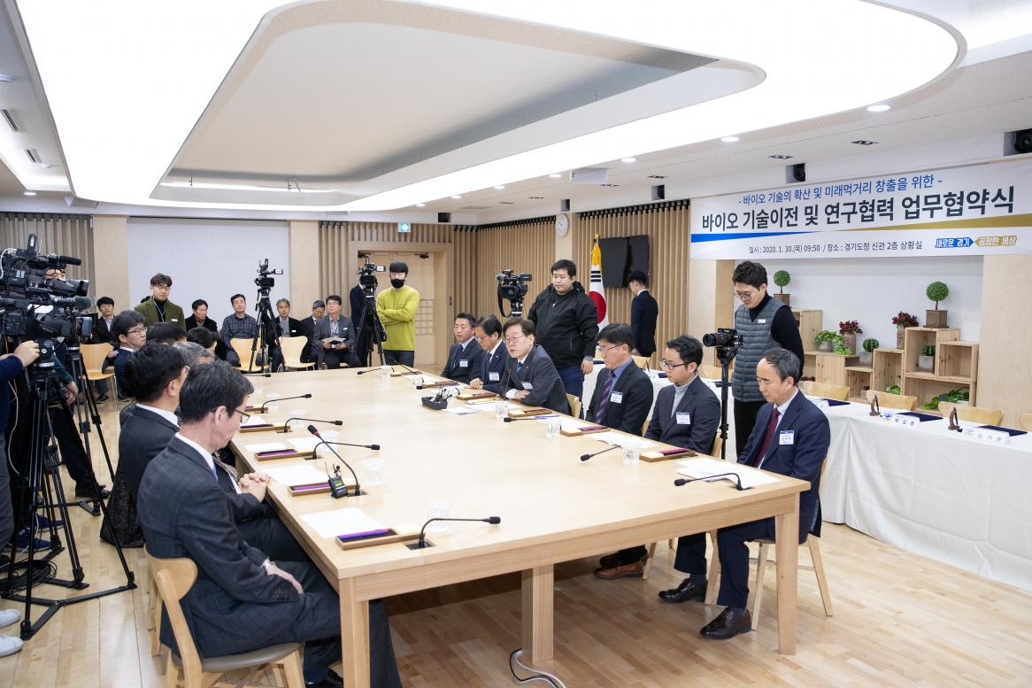 이번 협약식은 경기도가 지원하고 경제과학진흥원이 개발한 기술을 도내 바이오 기업에게 이전하고 신약 및 기능성제품 개발을 위한 연구협력을 도모하기 위해 마련됐다.