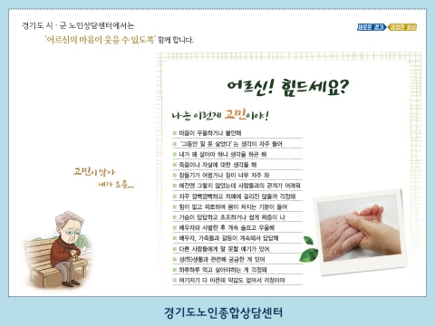 이 밖에 ▲상담인력 양성을 위한 전문상담 분과모임 진행 ▲SNS를 활용한 홍보 및 상담정보 내용 개발 ▲경기도노인상담 통합대표번호시스템 구축 등을 통하여 상담 서비스를 지속적으로 개선할 예정이다.