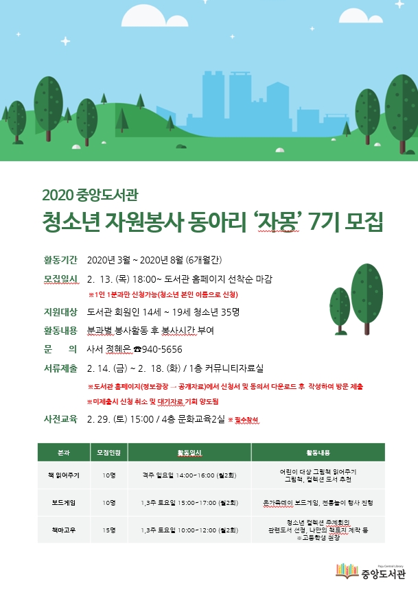 파주시 중앙도서관, 청소년 자원봉사동아리‘자몽’7기 모집