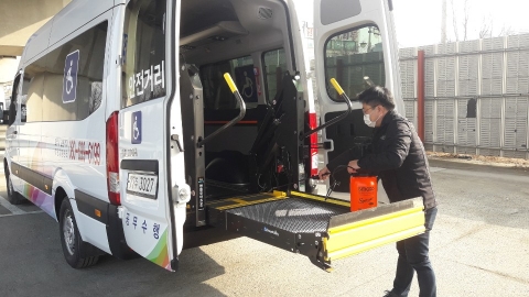 교통약자 차량 소독 주기적 실시! 안전한 탑승 준비 완료!