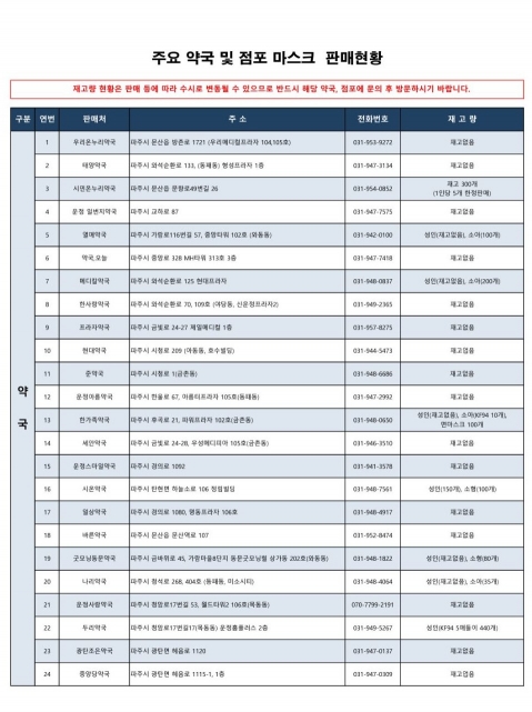 파주시 관내 마스크 판매소. 매일 11,000개 보급, 주말부터 35,000개 보급예정