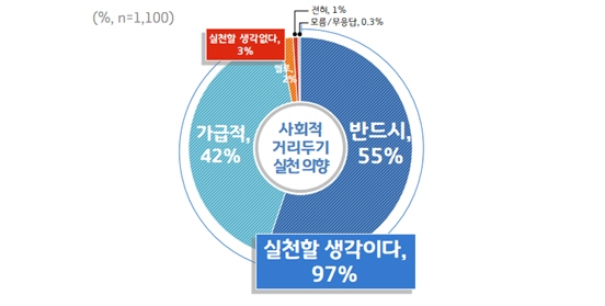 - 도민 압도적 다수(97%) 사회적 거리두기 ‘실천하겠다’