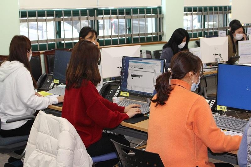▲ 보건소에 일시 파견되어 코로나 역학조사를 위해 콜센터 업무를 보는 파주시 공무원들