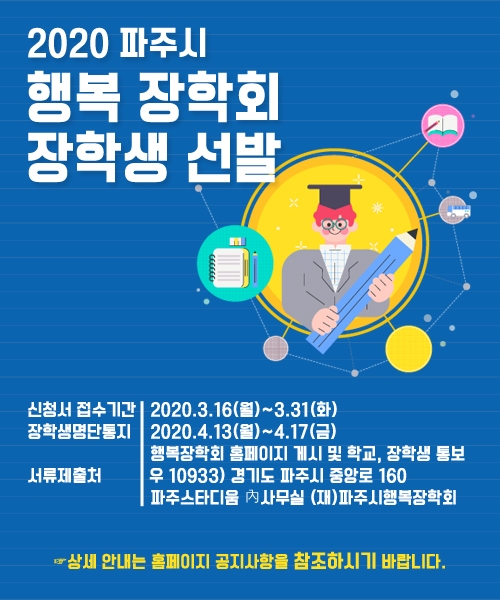(재)파주시행복장학회는 이달 31일까지 2020년 행복장학생을 모집한다.