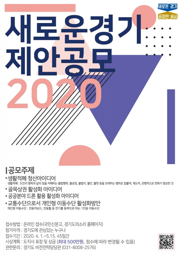- 경기도, ‘새로운 경기 제안 공모 2020’ 아이디어 공모전 개최