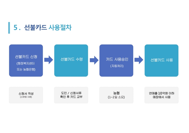 ○ 선불카드는 20일부터 주소지 읍·면·동 행정복지센터, 가까운 농협지점 방문 신청