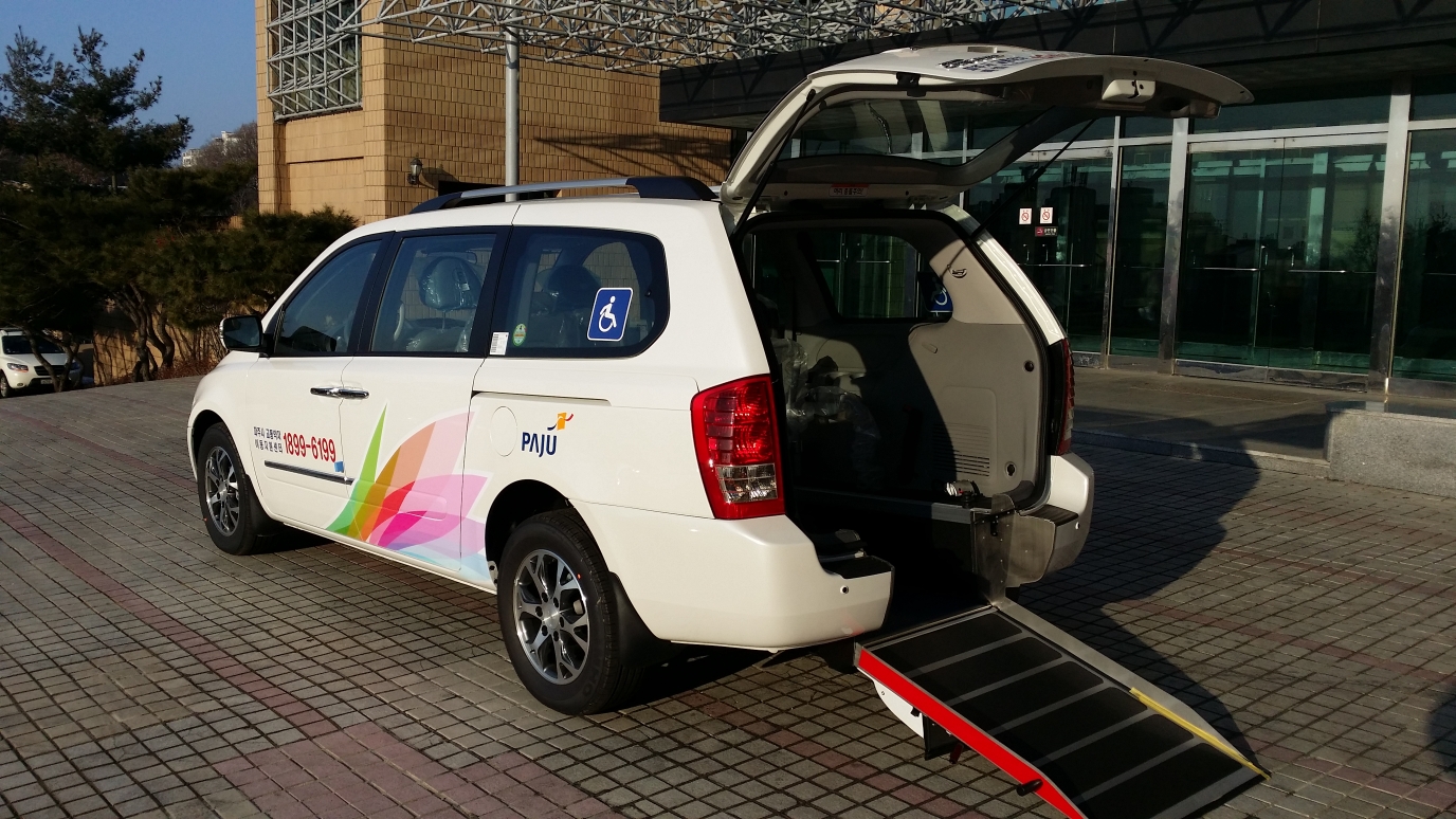 대상은 현재 이용등록 중증 장애인 및 65세 이상 대중교통 이용이 어렵거나 혼자서 외출 또는 이동이 어려운 사람으로, 접수 방법은 20일 당일 (00:00~24:00) 즉시 콜 이용자 모두 무료 이용 가능하다. 운행지역은 파주 관내, 관외 가능하며 (1일 편도 기준 최대 4회) 운행하고 있다.