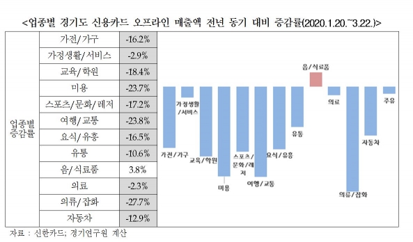 코로나19 발생 이후 경기도 내 신용카드 매출액, 전년 동기 대비 1조 8,821억 원 감소