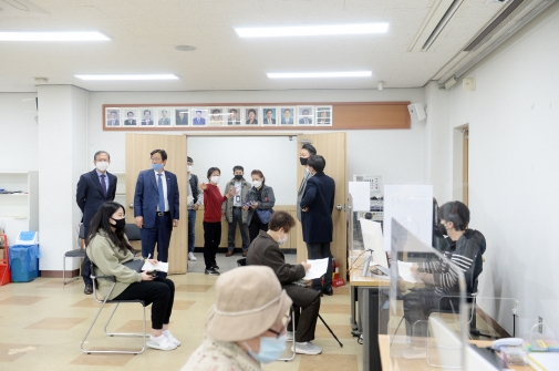 손배찬 파주시의회 의장은 지난 27일 금촌1,2,3동, 운정1,2,3동 행정복지센터와 운정 센트럴푸르지오아파트 이동창구 운영 현장을 방문해 관계자를 격려했다.