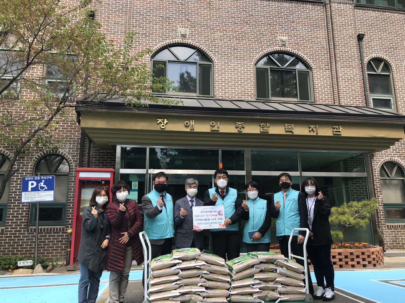 국민건강보험공단 파주지사(지사장 김인회)는 4월 27일(월), 파주시장애인종합복지관(관장 정학수)에 쌀 10kg 33포(99만원 상당)를 전달했다.