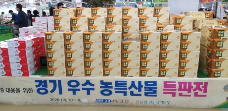 경기도가 코로나19로 인한 학교개학 연기, 자영업 침체 등으로 판로 확보에 어려움을 겪고 있는 농가들을 위한 온·오프라인 농산물 판촉전을 열고 있다.