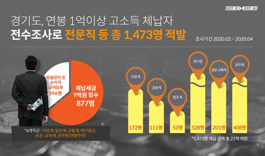 경기도, 연봉 1억 이상 고소득 체납자 전수 조사. 1,473명 적발, 9억 추징
