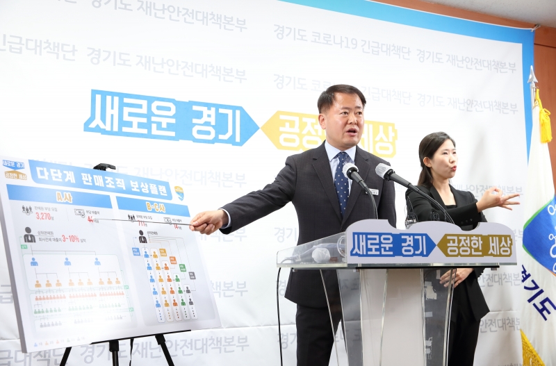 김영수 경기도 공정특별사법경찰단장은 19일 경기도청에서 기자회견을 열고 “불법 다단계나 부당 운영 상조업체에 대한 피해자 신고 및 관계기관의 제보가 잇따라 들어와 도민들의 피해가 심각하다고 판단해 수사를 시작했다”며 “지난해 6월부터 올 4월까지 수사를 벌여 총 14명의 피의자를 검거하고 이 중 7명을 검찰에 송치했다”고 밝혔다.