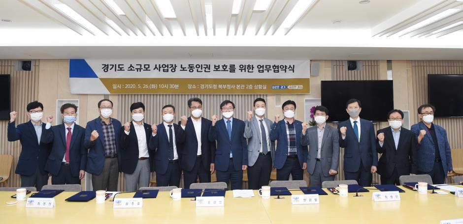 경기도와 고용노동부 경기지청, 고양·부천 등 6개 시군, GS리테일, 롯데GRS, BGF리테일, 코리아세븐, 한국미니스톱 등 편의점 프랜차이즈 5개사는 26일 경기도청 북부청사에서 ‘노동권익 서포터즈 활동지원 업무협약’을 체결했다.