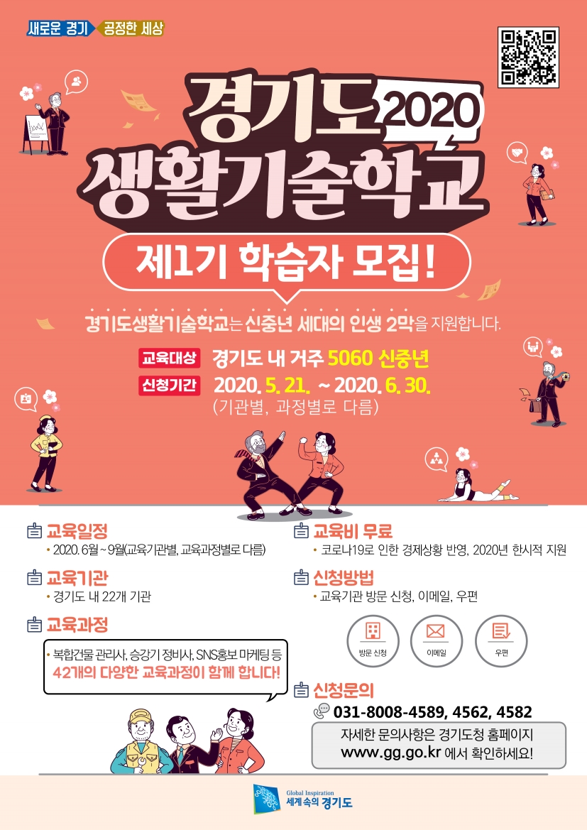 “인생 2막, ‘경기도생활기술학교’에서 설계하세요” -도, 5060 신중년 세대 대상 2020년 교육생 모집