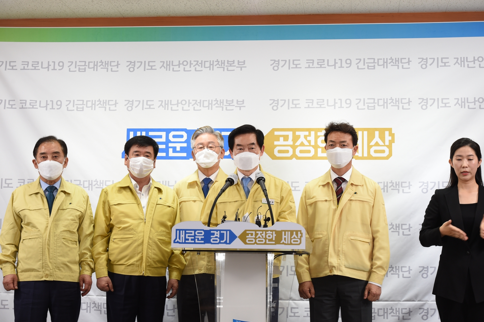 이날 기자회견에는 안병용 경기도시장군수협의회장(의정부시장)과 이재명 경기도지사를 비롯해 박윤국 협의회 부회장(포천시장), 최용덕 사무총장(동두천시장), 김종천 감사(과천시장) 등이 참석했다.