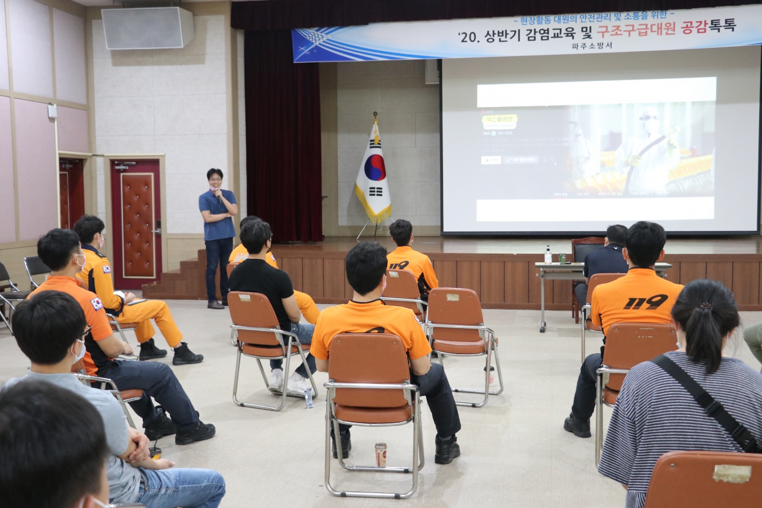 파주소방서(서장 김인겸)는 11일 구조구급대원을 대상으로 코로나19대응 감염방지교육 및 상반기 정기 간담회를 개최하였다.