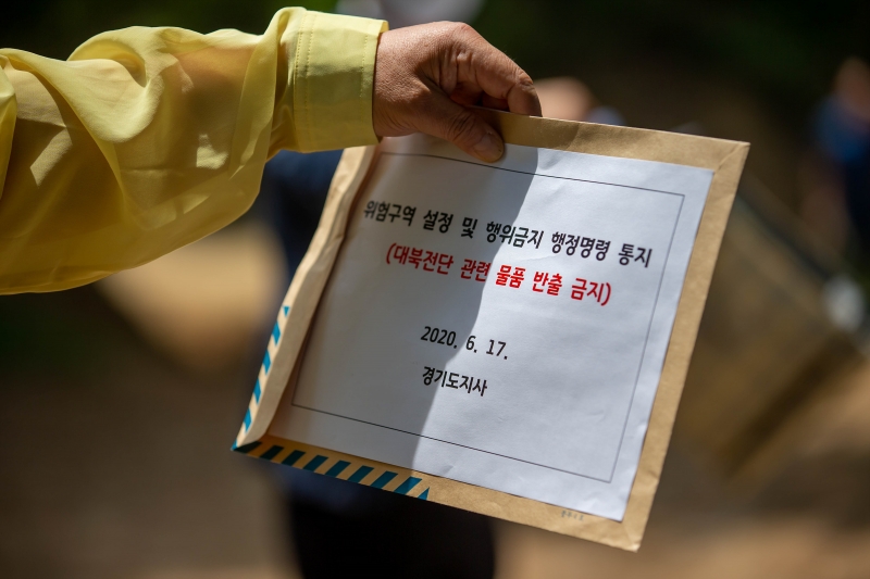 경기도, 대북전단 살포단체 대표 가택에서 고압가스통 적발 - 17일 오전 위험구역 설정 행정명령 발령 후 첫 행정집행