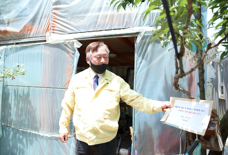 이재강 부지사는 지난 17일 오후 포천시에 있는 이민복 대표의 집을 방문, 위험구역 및 행위금지 행정명령을 고지하고 공고문을 전달한 바 있다. 이후 이 부지사는 포천시에 해당 주택의 합법 여부를 확인해달라고 요청했고, 19일 포천시로부터 무허가 시설임을 최종 확인했다.